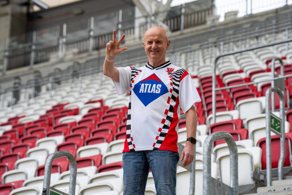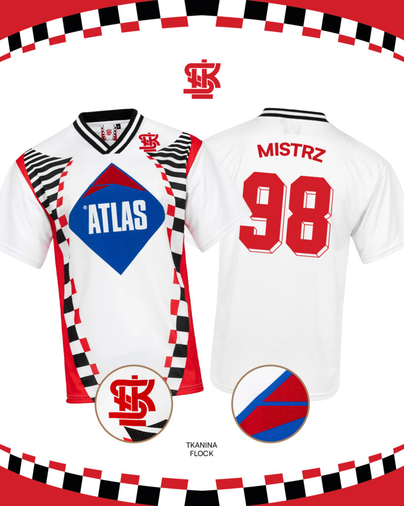 Do U2 ŁKS Store trafia wyjątkowa nowość. Koszulka piłkarska ŁKS Łódź 1998 to wierna replika trykotu, w którym „Rycerze Wiosny” sięgnęli po drugie w historii mistrzostwo Polski. Biała, dopracowana w każdym detalu, z herbem (takim jak w 1998) i charakterystyczną reklamą firmy Atlas, uzupełniona czarno-czerwonymi zdobieniami. Dokładnie taka, jak wtedy.