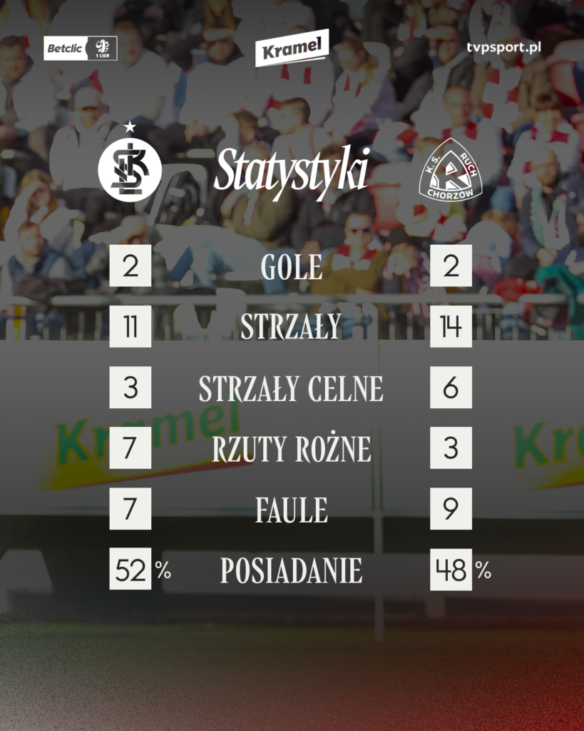 W hicie 26. kolejki Betclic 1. Ligi nie zabrakło goli, emocji i twardej walki. Przy ponad dziesięciotysięcznej publiczności piłkarze ŁKS-u zremisowali 2:2 z Ruchem Chorzów.