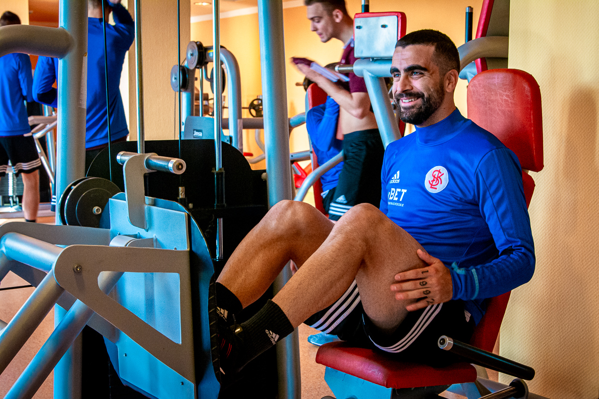Pierwszą pełną dobę pobytu w hotelu Club Grand Aqua zawodnicy rozpoczęli oczywiście od pożywnego śniadania, po którym przyszła pora na wizytę w siłowni. Zajęcia jak zwykle odbyły się w dwóch grupach, a głównym ich celem było – w największym skrócie – budowanie mocy. Używając natomiast bardziej fachowej terminologii ełkaesiacy skupili się na: sile eksplozywnej kończyn dolnych, prewencji urazów mięśni przywodzicieli oraz ćwiczeniach plyometrycznych.